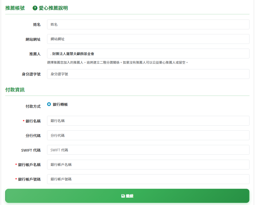 申請成為推廣夥伴您需要先在會員中心申請成為分潤計畫的推廣夥伴,填寫基本資料即可開始推廣。