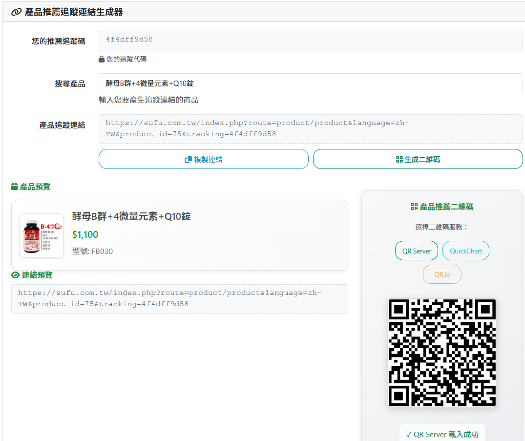 獲取產品推廣連結成功申請後,您可以在會員中心-產品推薦追蹤碼獲得專屬的產品推廣連結或推薦碼,用於追蹤您的推廣成效。