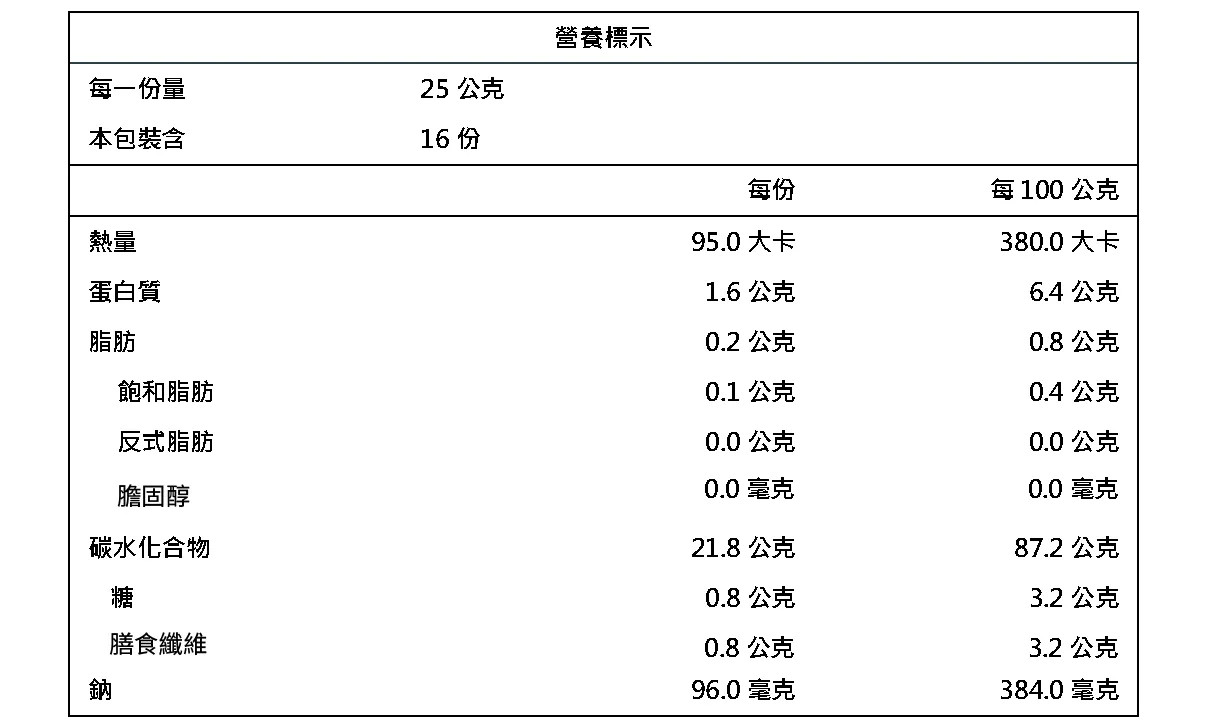 成份:玉米、二砂糖、鹽、 麥芽萃取物、脂肪酸甘油酯、焦磷酸鈉、檸檬酸。