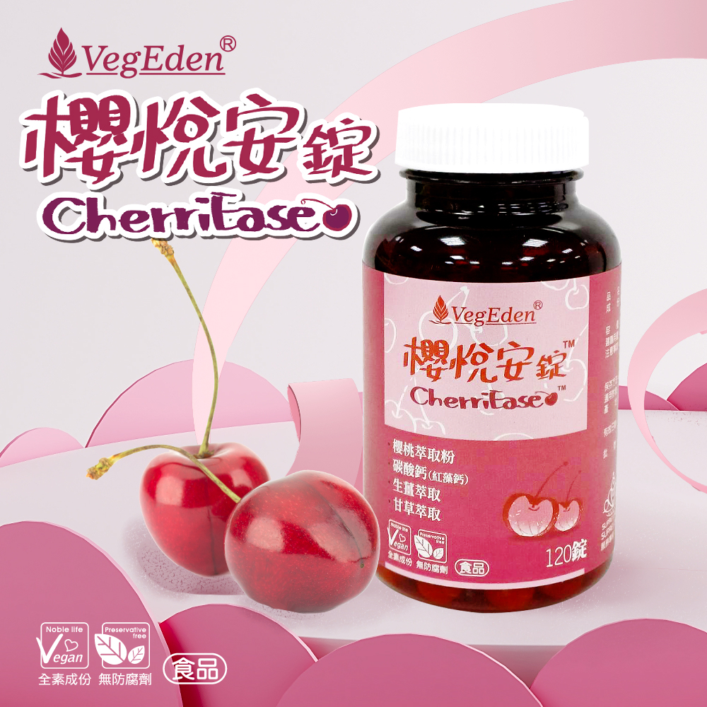 成份:櫻桃萃取粉、碳酸鈣(紅藻鈣)、羧甲基纖維素、生薑萃取、甘草萃取、二氧化矽