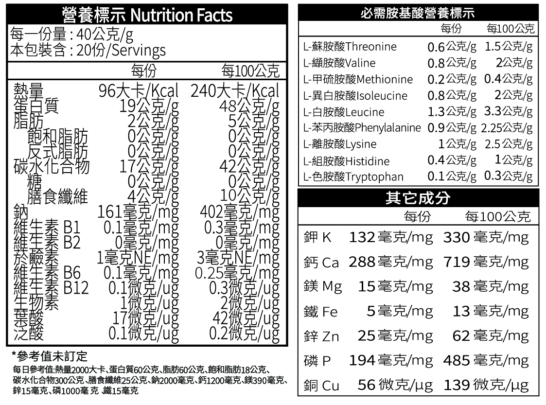 | 蛋白質 | 19公克/份 |