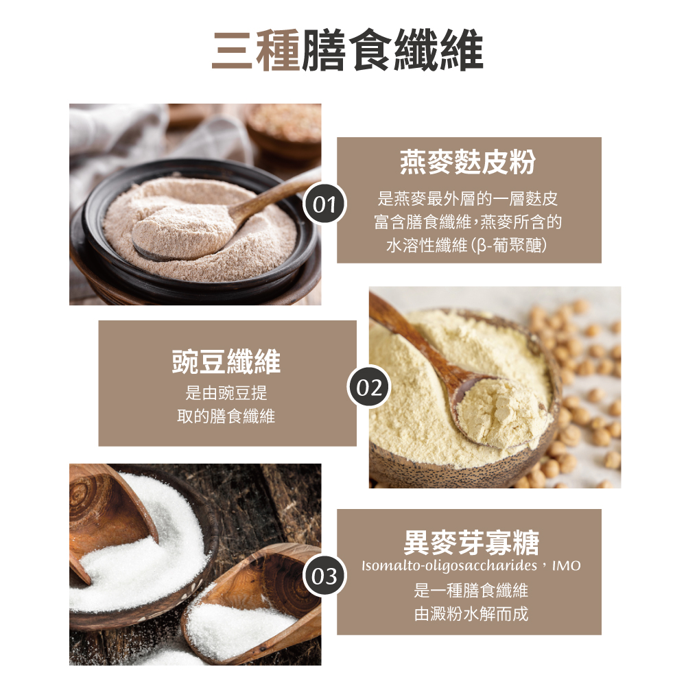 成分:燕麥麩皮粉、豌豆纖維、異麥芽寡糖