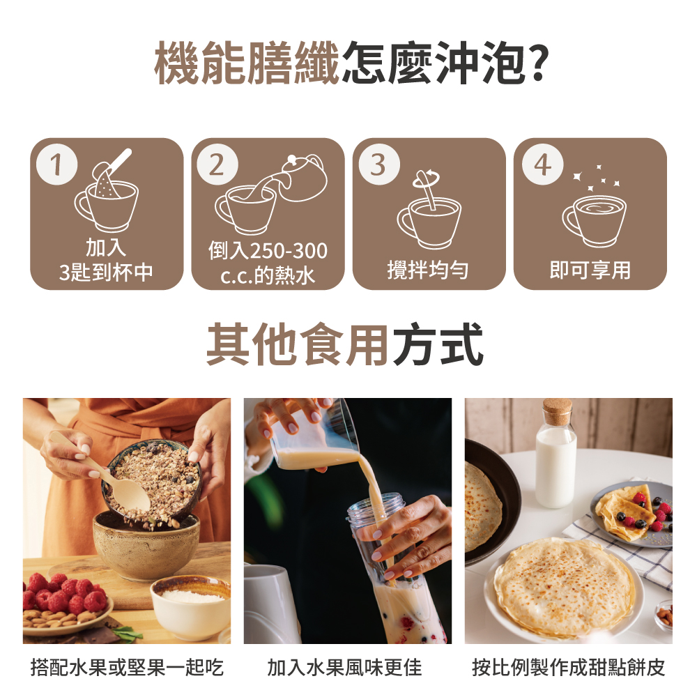 食用方式:以250~300c.c.熱水或溫水沖泡,攪拌均勻即可。