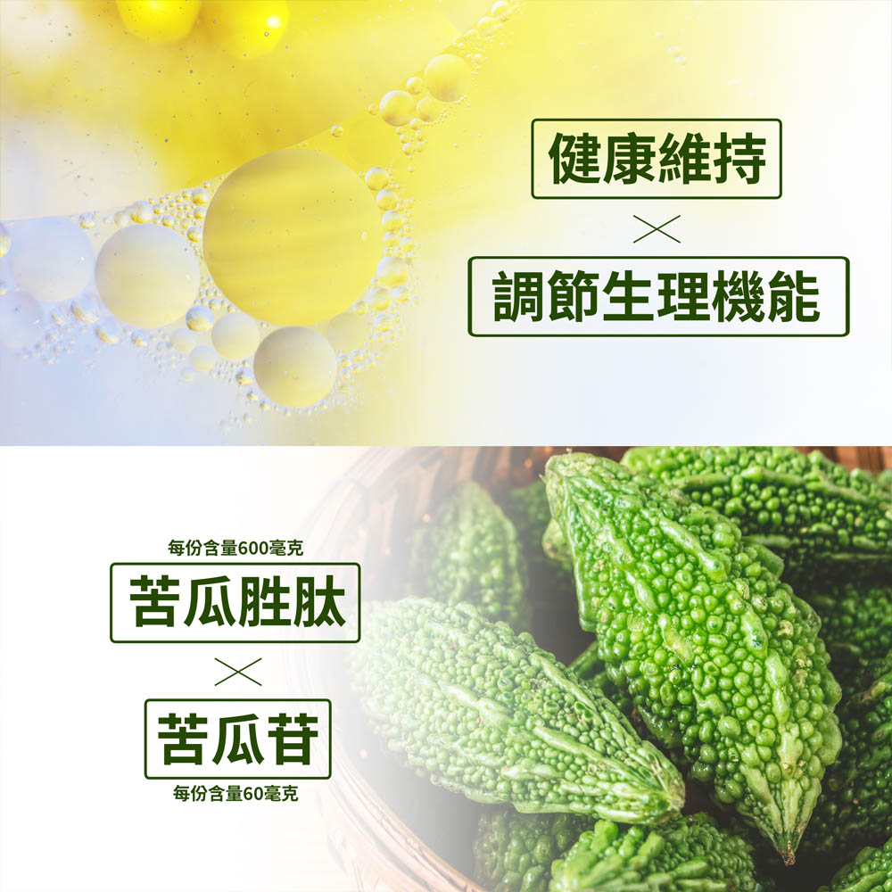 - ✔️苦瓜胜肽600毫克/份 ✔️苦瓜萃取物(含苦瓜苷) 60毫克/份