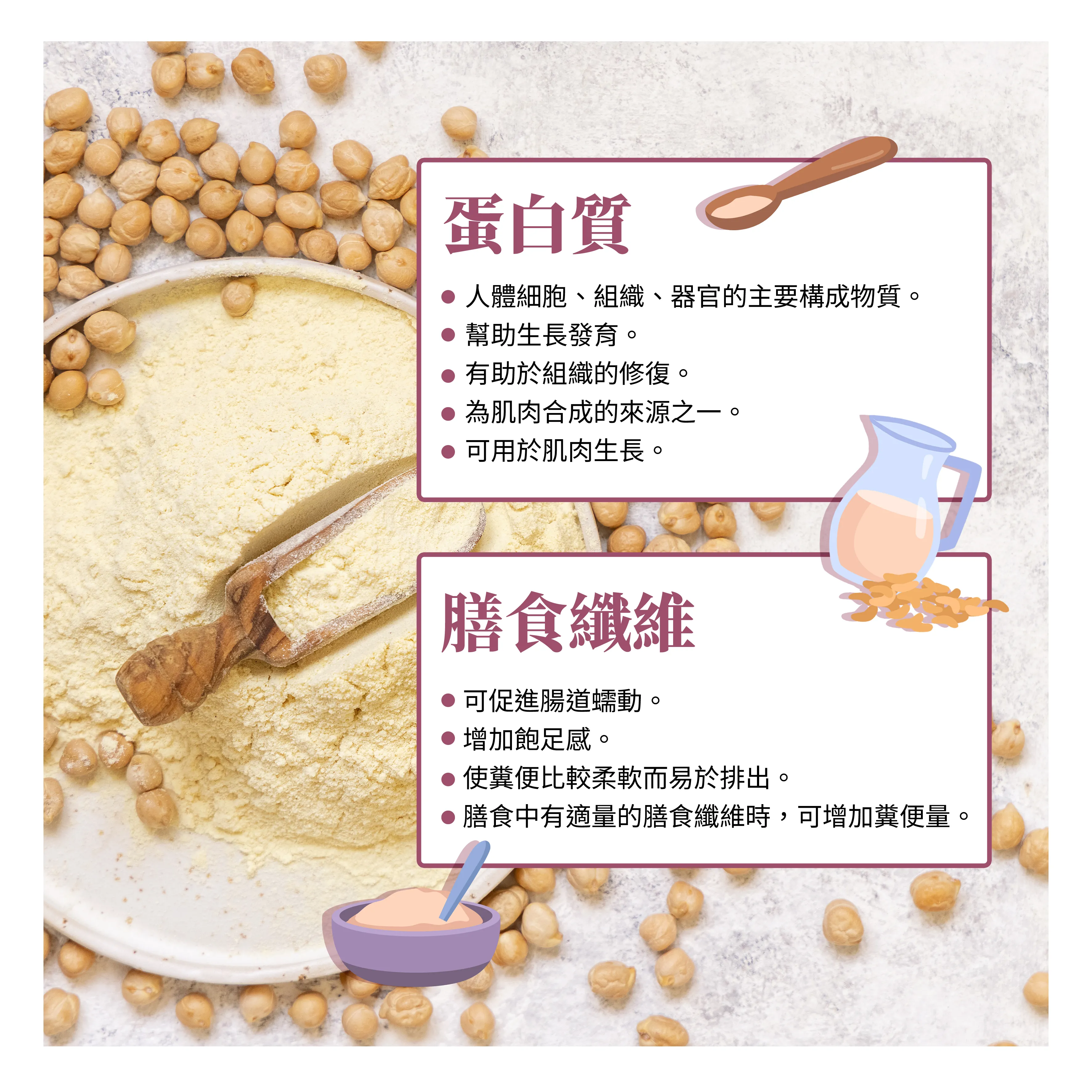 - ✔️ 膳食纖維2.7公克/份 ✔️ 蛋白質8公克/份