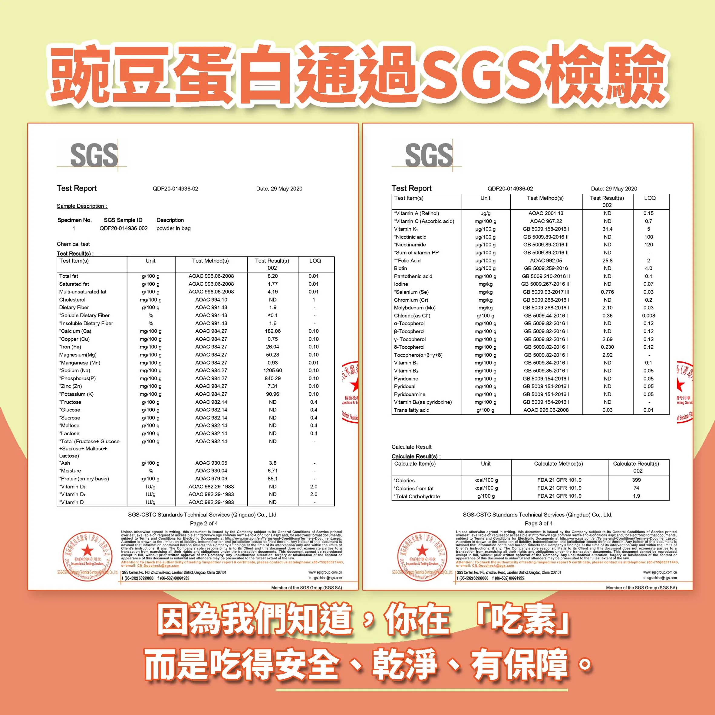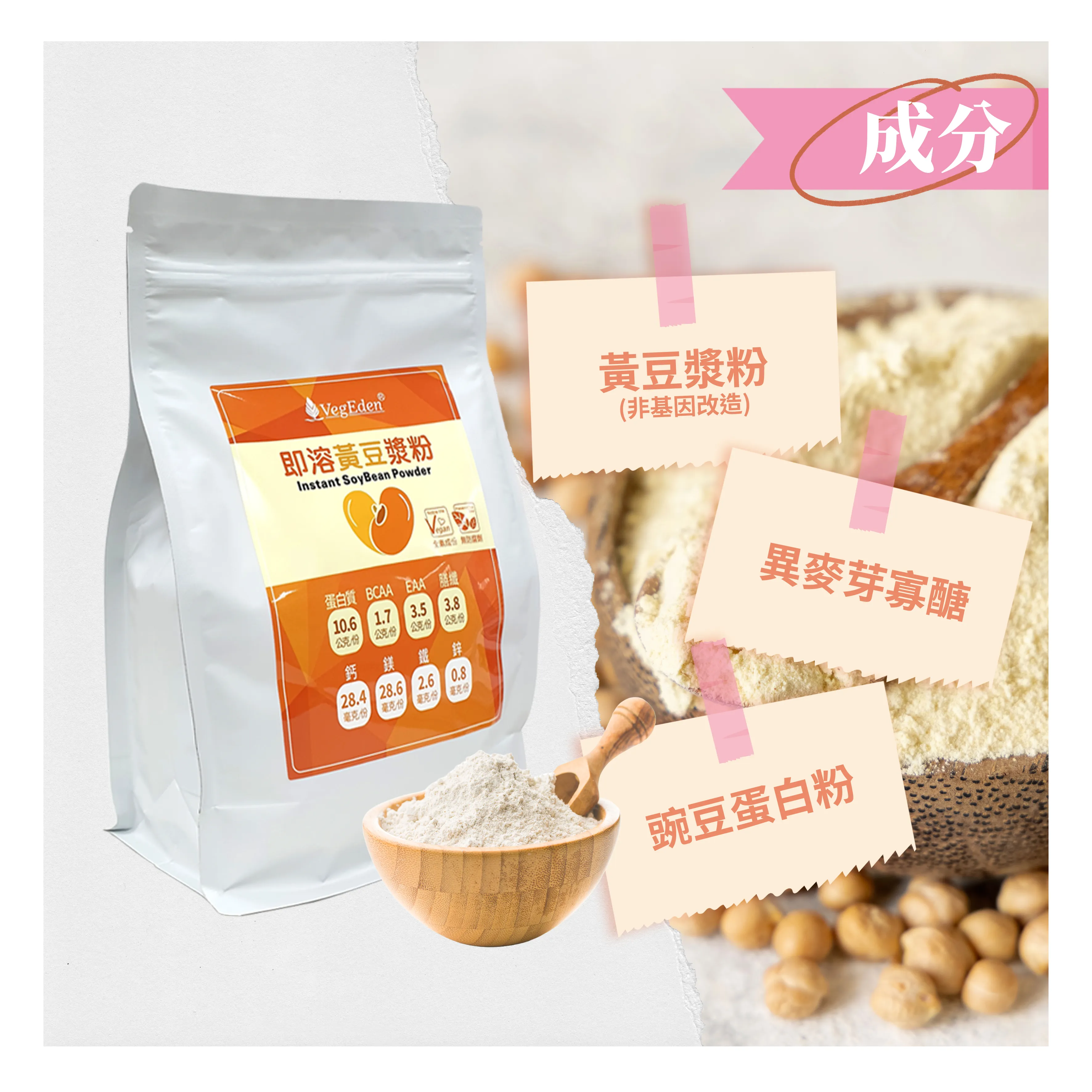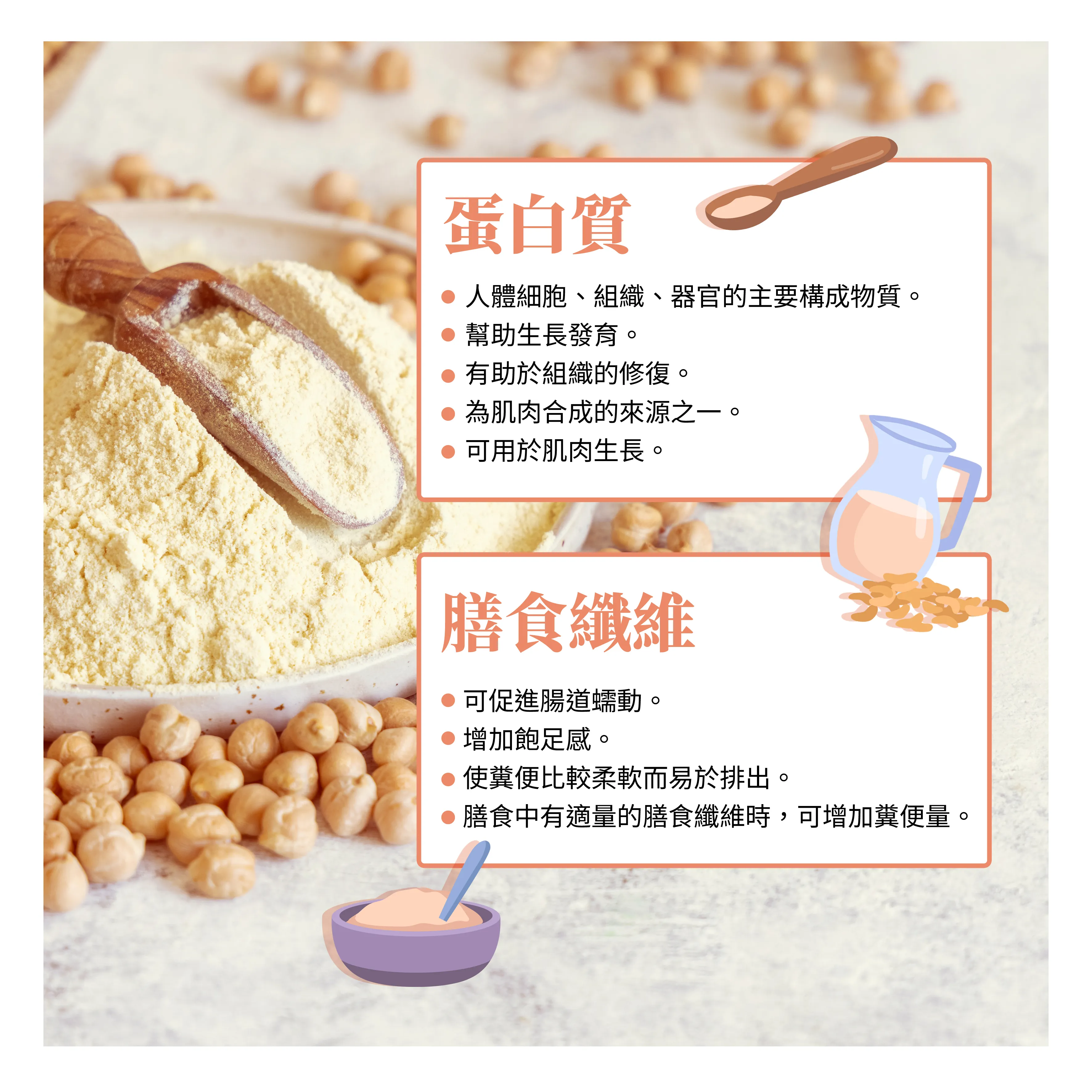 成份:即溶黃豆粉(非基因改造)、異麥芽寡醣、豌豆蛋白粉