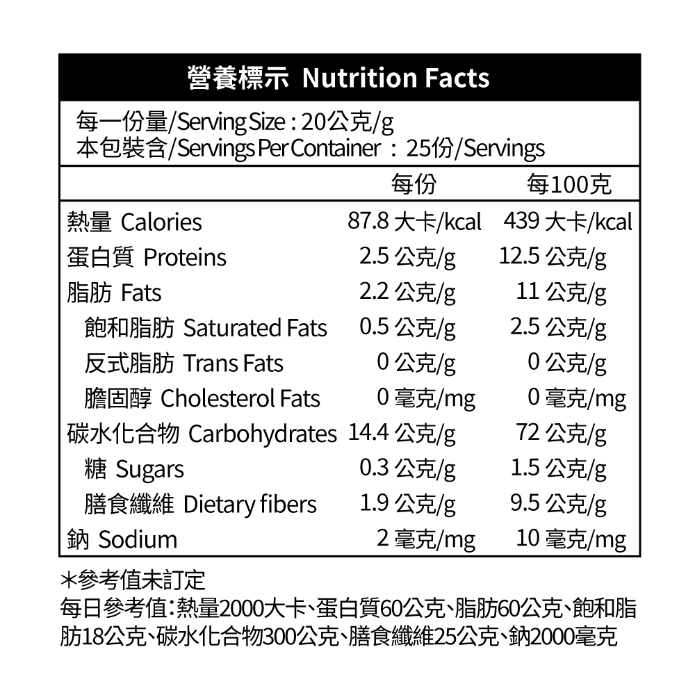 - ✔️ 膳食纖維1.9公克/份 ✔️ 蛋白質2.5公克/份