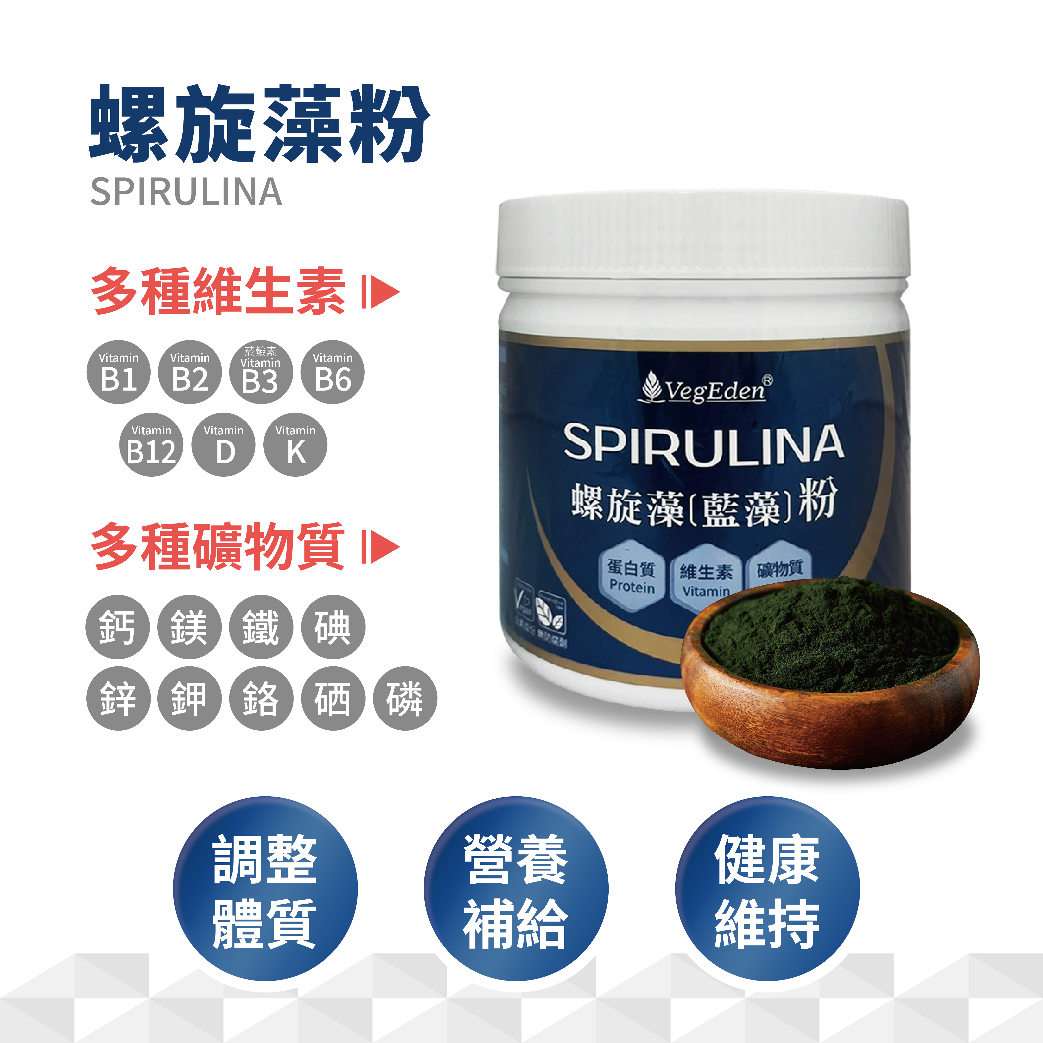 嚴選優質藍藻粉,富含藻藍素與多元營養素。幫助調節生理機能、營養補給,是全家人與素食者健康維持的食品。