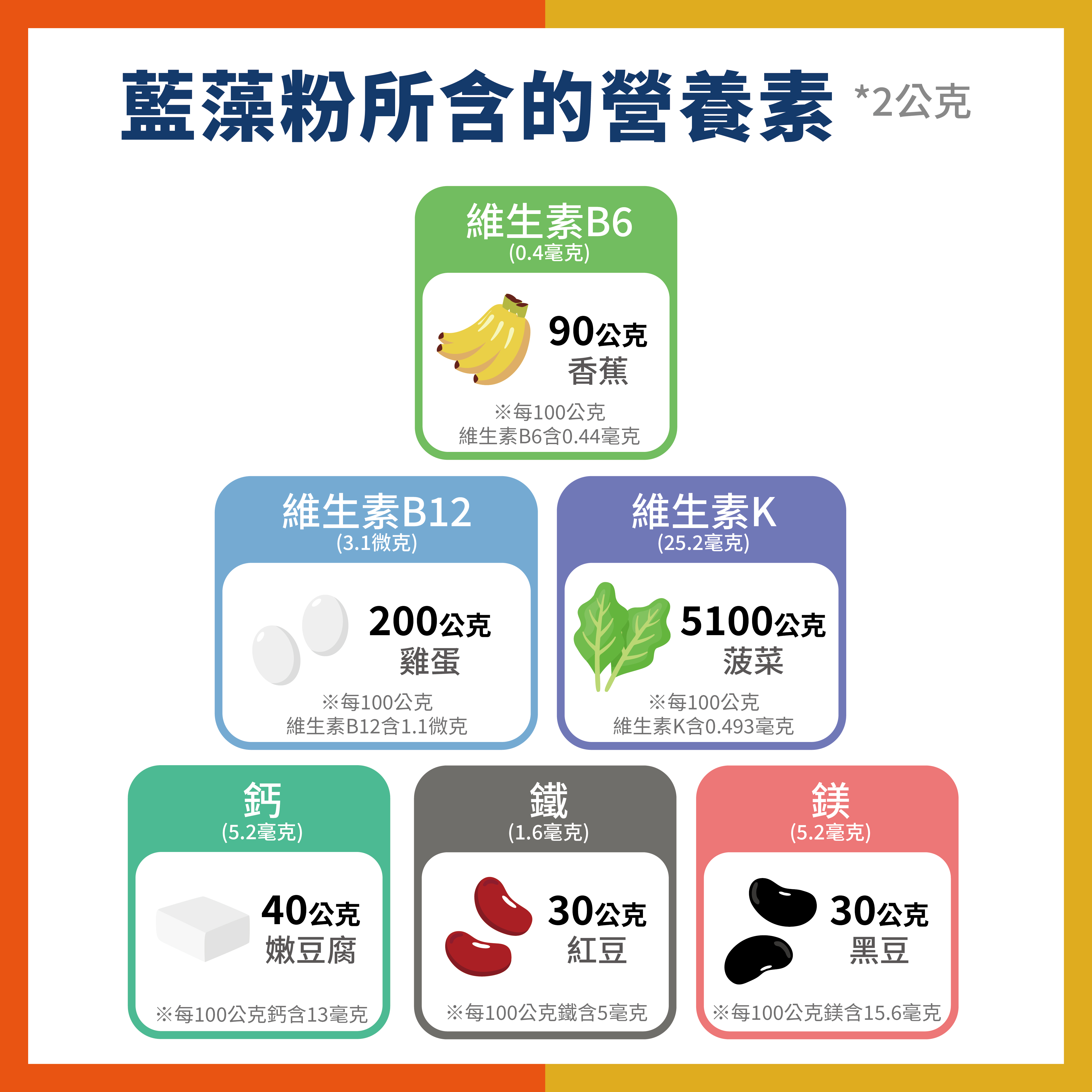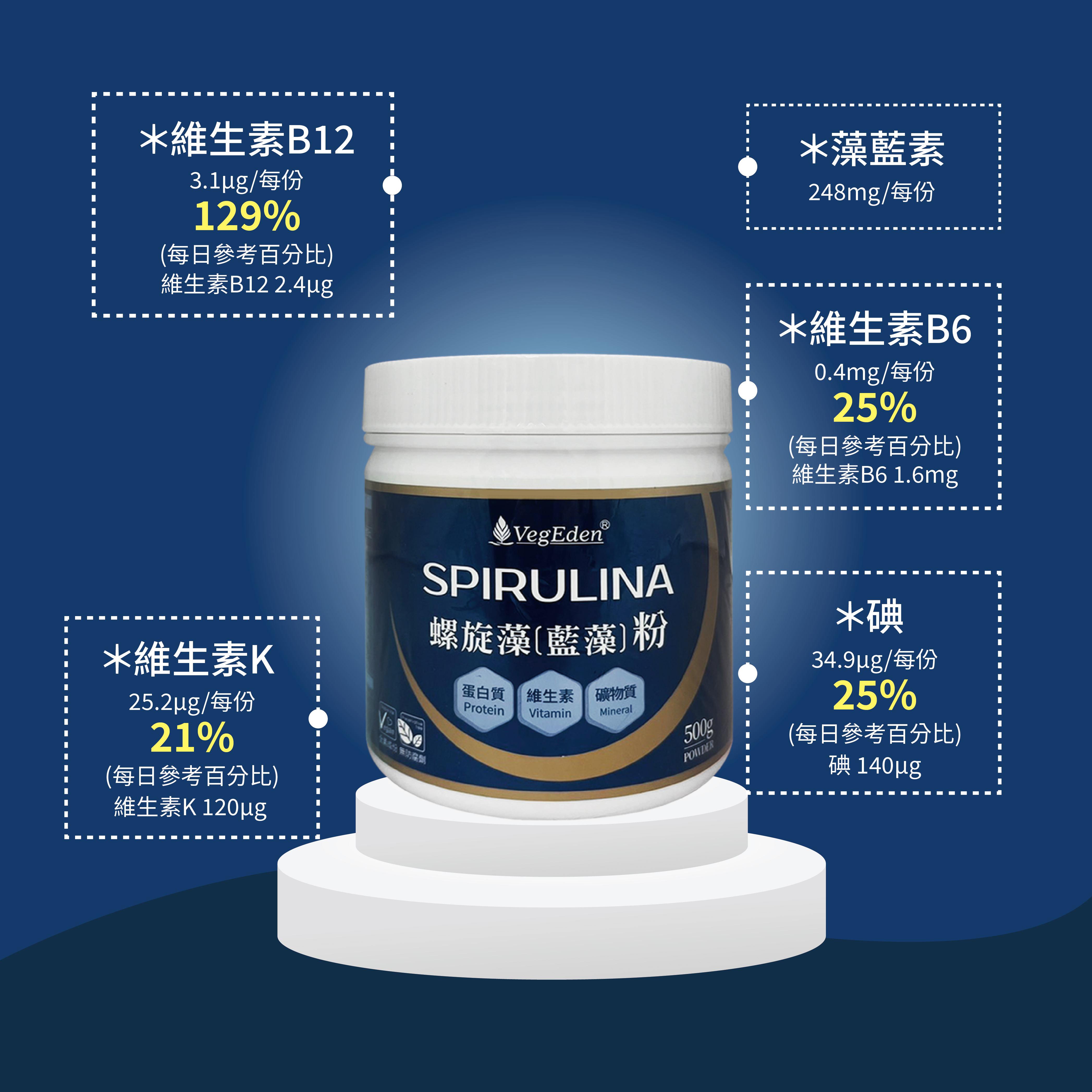 每份(2g)含:藻藍素 248mg | 維生素B12 3.1μg